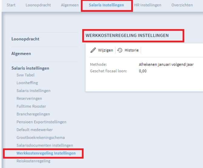 Je kunt de gewenste methode instellen op bedrijfsniveau onder de WKR-instellingen.