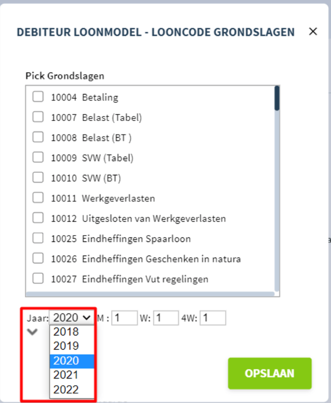 Uitsluiten van WKR: Heeft een looncode standaard grondslag 10060, maar wil je dit specifiek voor dit bedrijf niet? Voeg dan de grondslag (10061) Uitsluiten van Werkkostenregeling wn toe. Deze twee grondslagen heffen elkaar op.