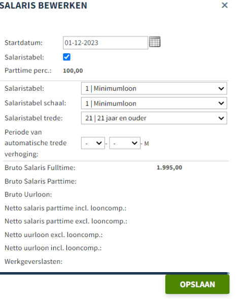Het salaris dien je altijd in te voeren per start van de periode. Bij indiensttreding wordt het salaris automatisch herrekend op basis van de startdatum in het dienstverband.